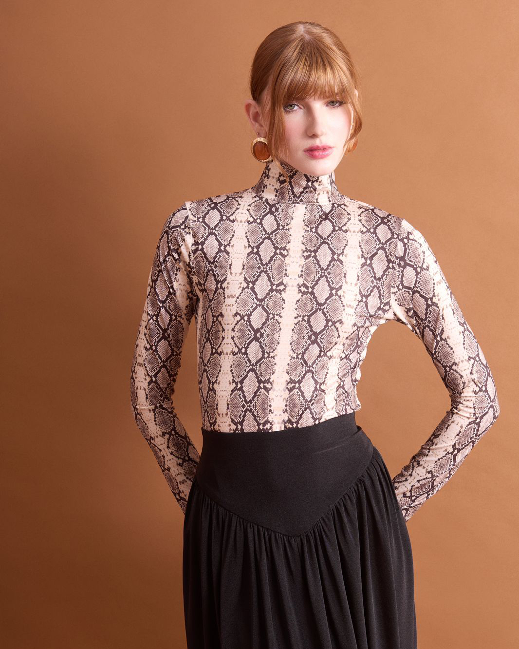 Body de manga longa com estampa cobra, modelagem ajustada e gola alta. Valoriza a silhueta com conforto e traz um toque moderno e marcante ao visual.