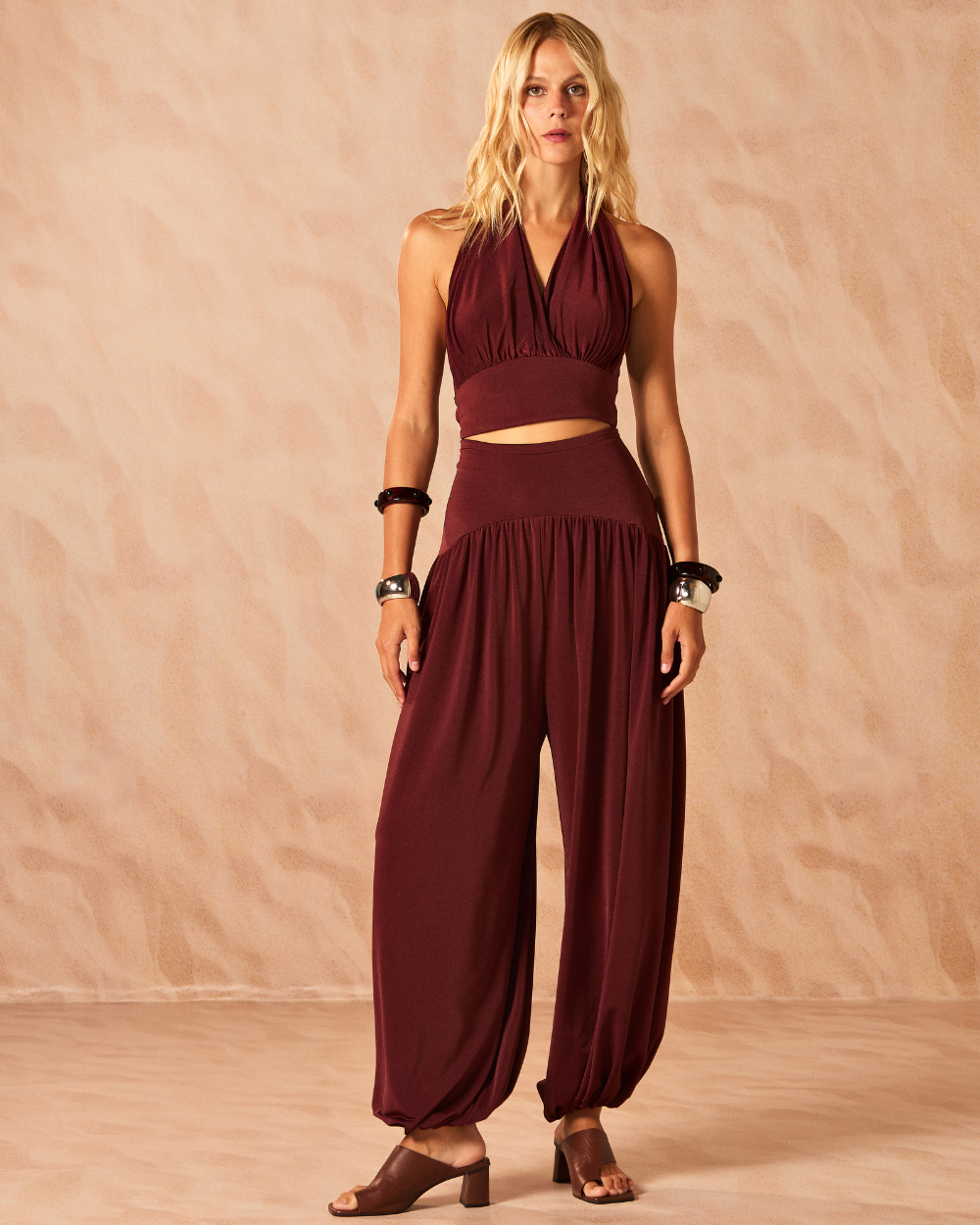 Calça em Jersey com cintura alta e cós largo, que proporciona conforto e sofisticação. A modelagem ampla com barra balonê cria um efeito fluido e moderno.