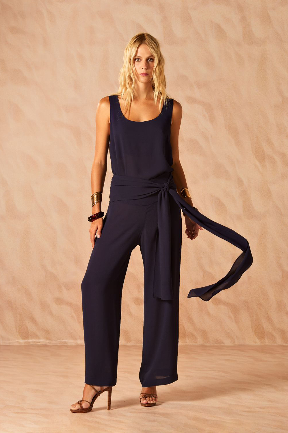 Calça em crepe Georgette, com modelagem reta e caimento sofisticado. Possui faixa com amarração lateral que valoriza a cintura e acrescenta um detalhe moderno e elegante.
