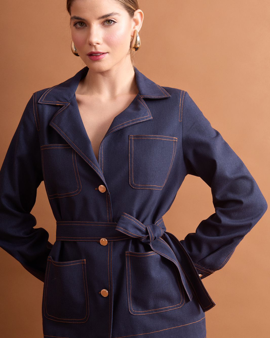 Casaco parka em sarja com detalhes de pespontos. Acompanha faixa para amarração na cintura.