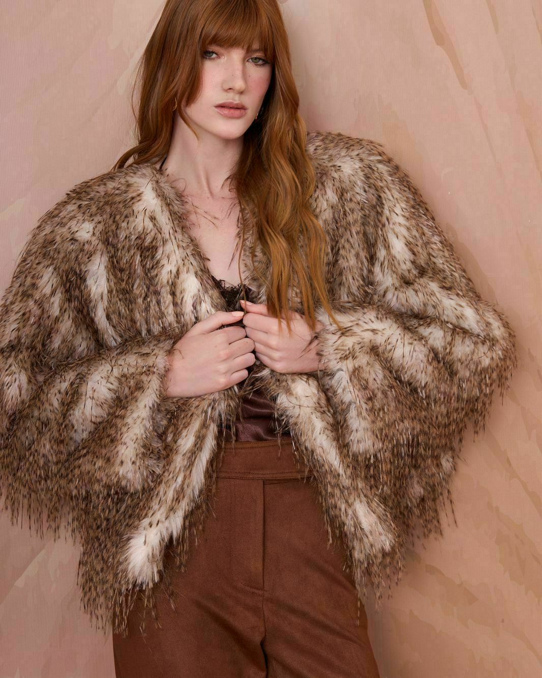 Casaco confeccionado em pele sintética, com textura macia e volumosa que traz sofisticação e impacto ao visual. O modelo possui modelagem ampla, proporcionando caimento elegante e confortável, além de um visual moderno e marcante.