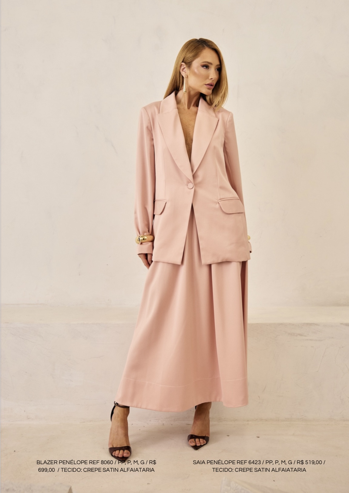 Tecido: crepe satin alfaiataria.