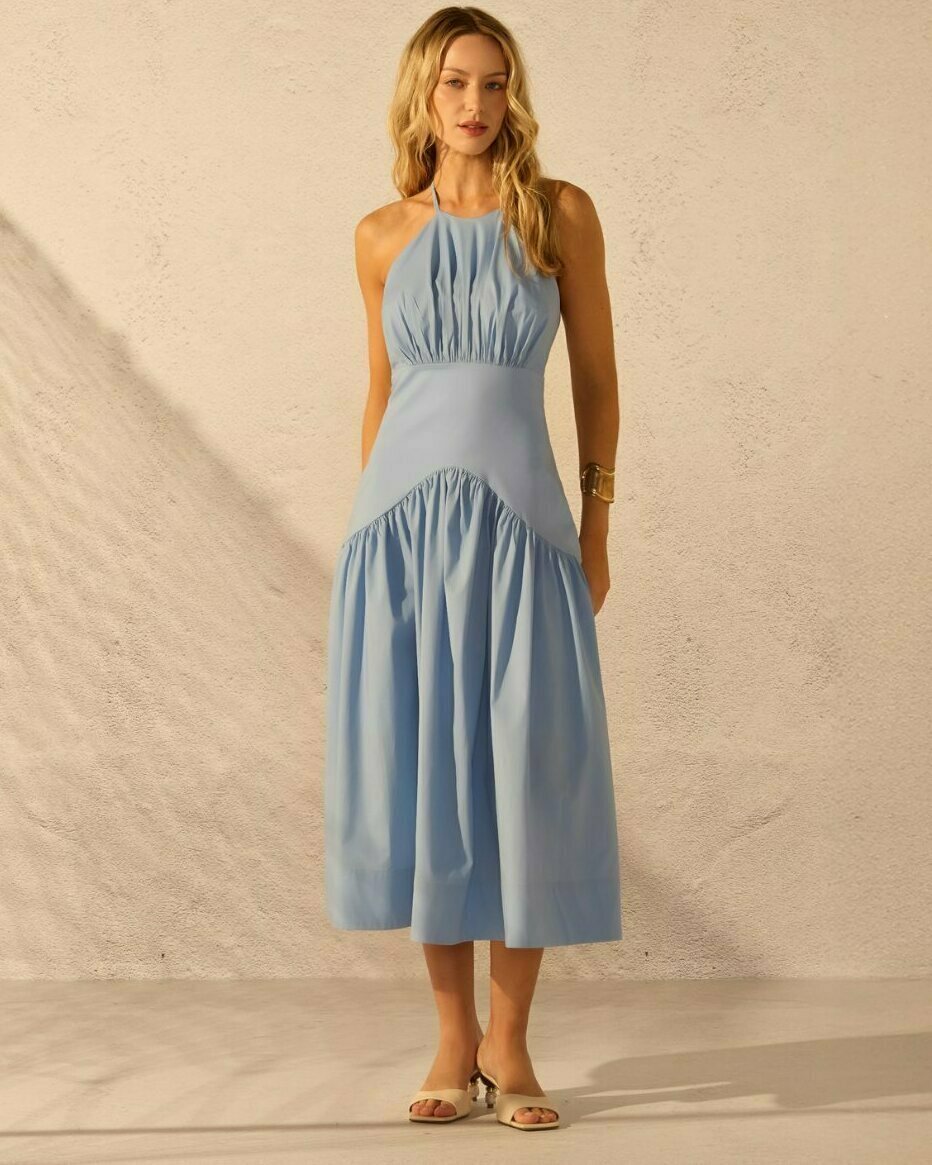 Vestido em tricoline com modelagem frente única, que valoriza o colo e traz um toque de frescor ao visual. Possui recortes estratégicos e franzidos que realçam a silhueta, além de caimento leve e elegante.